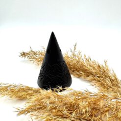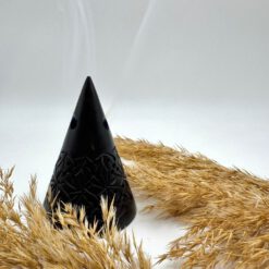 Der „Ikone“ Räucherkegel-Halter besteht aus massivem Speckstein mit natürlicher Maserung. Die elegante schwarze Farbgebung macht ihn zu einem stilvollen Accessoire für deine Wohn- oder Meditationsräume.