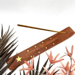 Das filigrane Sternenmuster auf dem Holzhalter verleiht deinem Raum einen Hauch von Magie und Harmonie. Der Halter sorgt dafür, dass deine Räucherstäbchen stabil stehen und die Asche sicher aufgefangen wird.